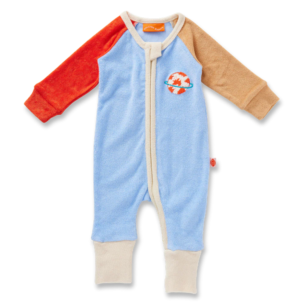 Space Blue Terry Long Sleeve Romper