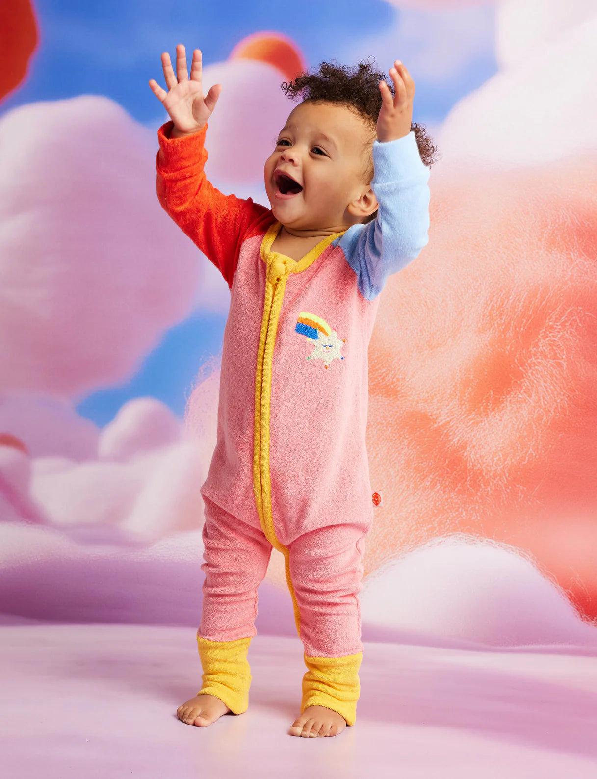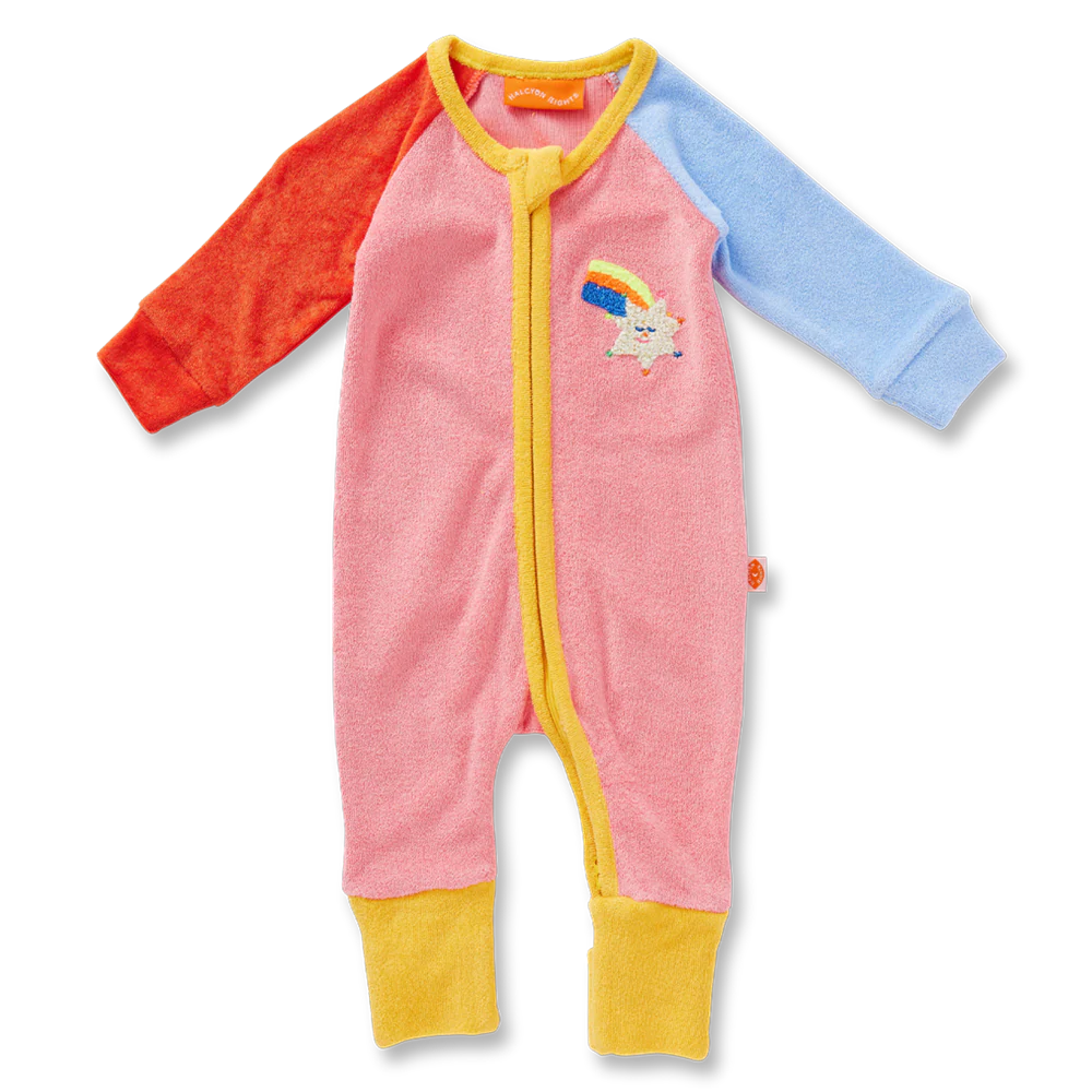 Stars Pink Terry Long Sleeve Romper