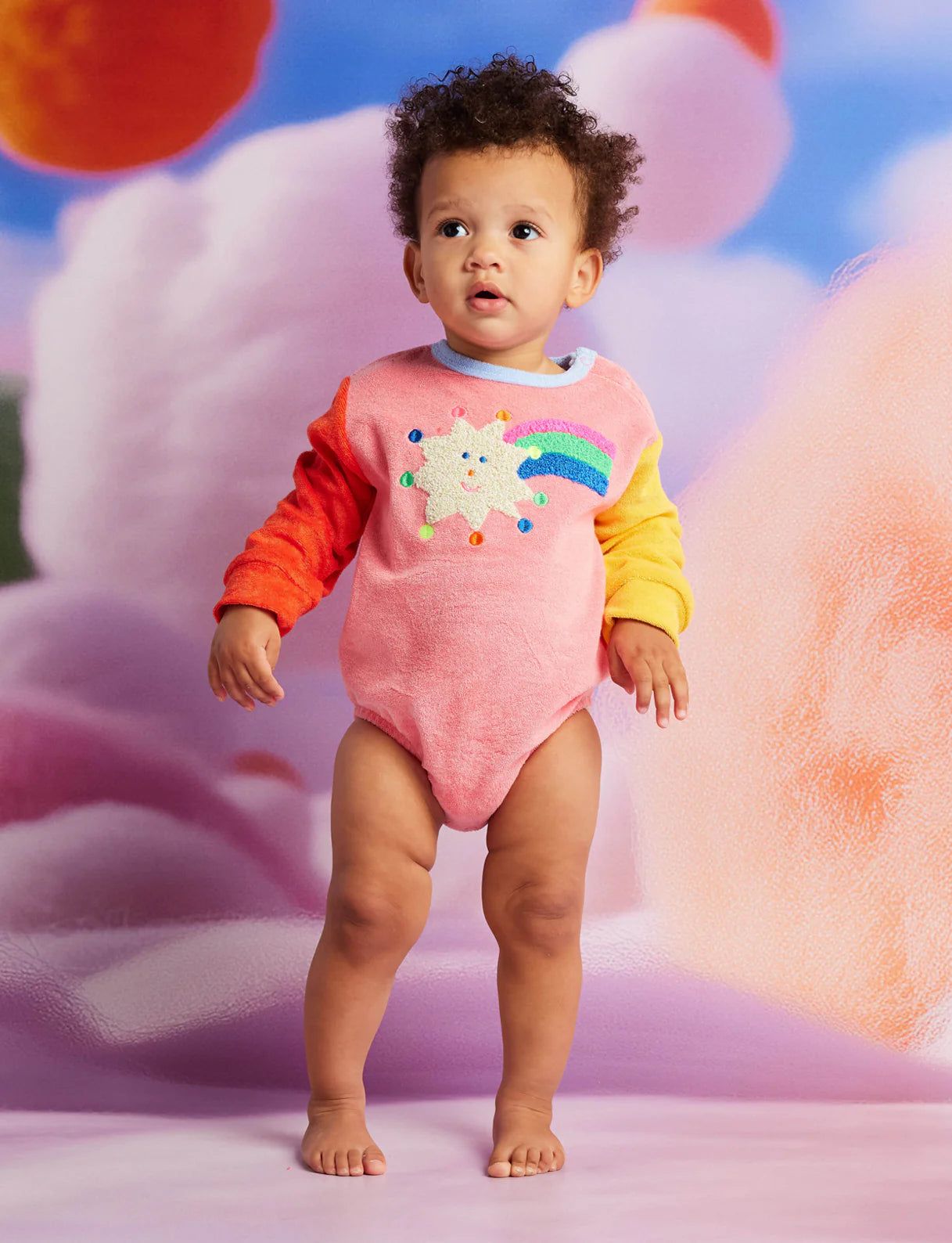 Stars Pink Terry Long Sleeve Bodysuit