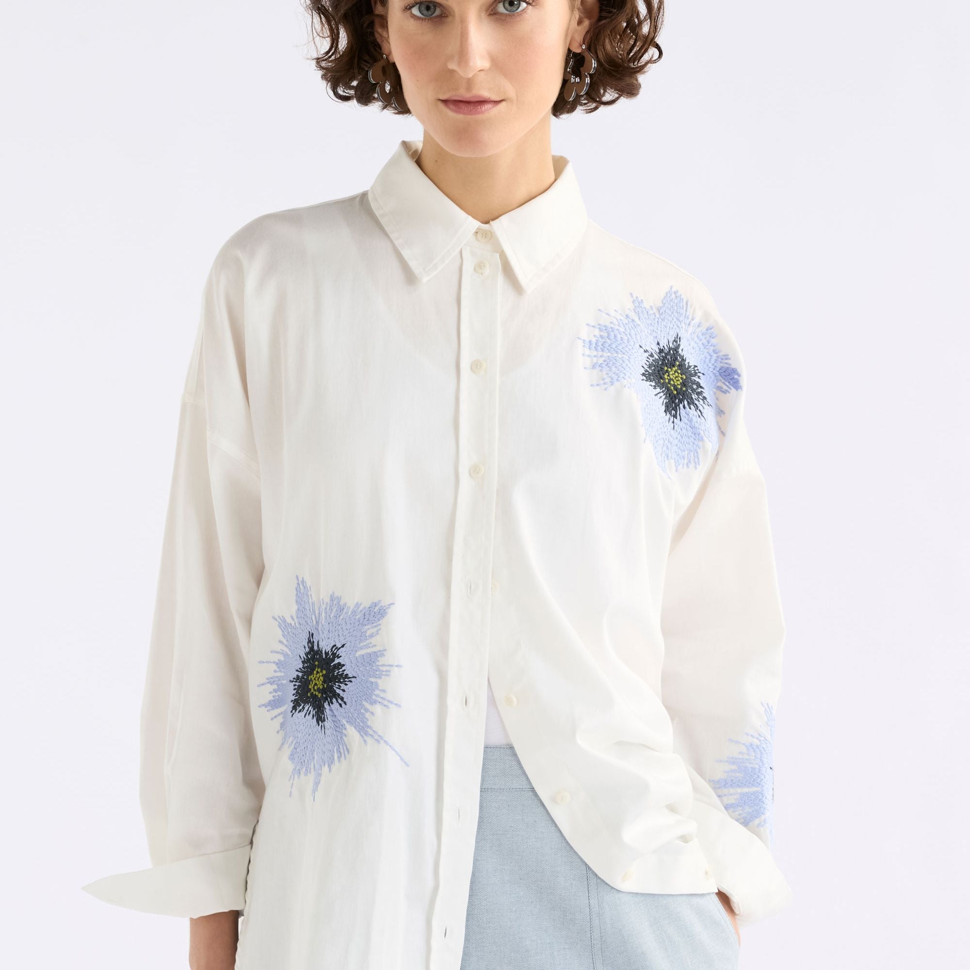 Eiren Relaxed Shirt - WHITE / LILAC BLUE